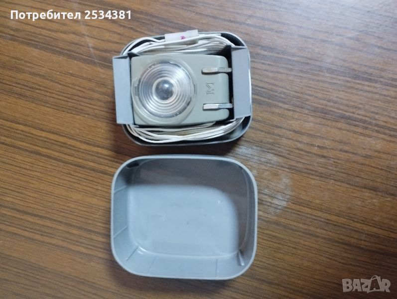 Стара подвижна лампа за осветление и сигнализация на 12 волта.Метална с магнит и закачалка,която е гумена и се мести от двете страни, според лампата която ще се ползва.Кабела е дълъг 6 метра,в масивна пвц кутия.