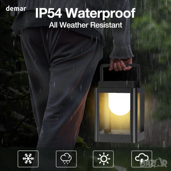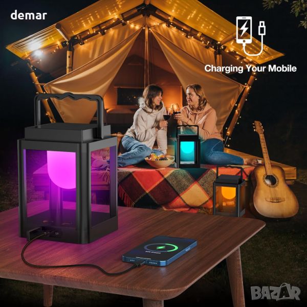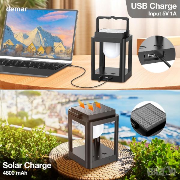 Соларният преносим фенер разполага с 10 RGB цвята (топло, бяло, топло бяло, червено, зелено, тъмно синьо, жълто, лилаво червено, светло синьо, седемцветен градиент) с регулируема яркост, идеален за всяка среда. Той предлага два метода на зареждане: слънчево и Type-C, осигуряващи функционалност както на открито, така и на закрито. Фенерът има 4800mAh батерия, която може да зарежда електронни устройства през USB, осигурявайки удобство в движение. Изработен от матиран ABS материал с водоустойчив рейтинг IP54, той е идеален за множество сцени, включително къмпинг, вътрешни дворове, палатки, спални и офиси.