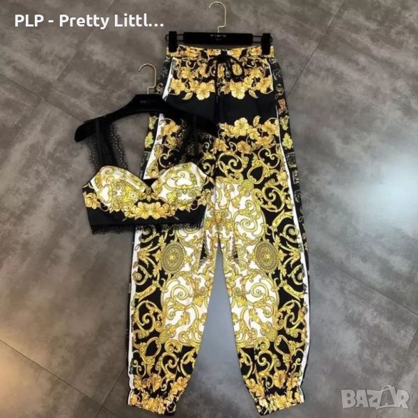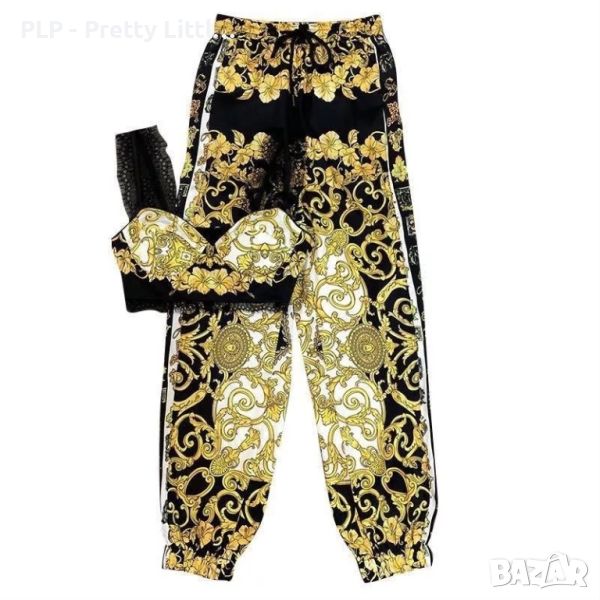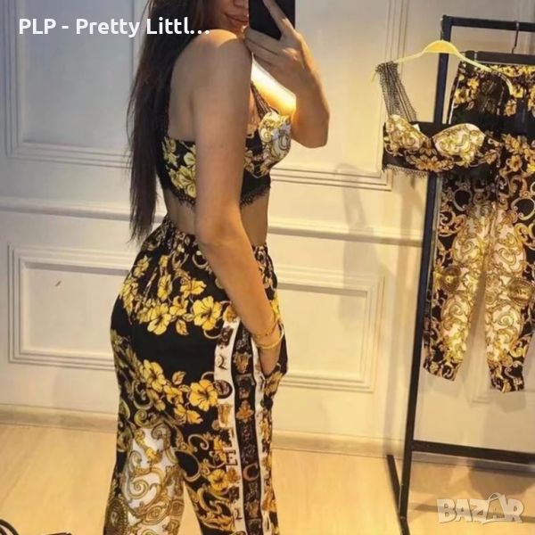 Модерен комплект от две части - топ и панталон с стилен десен, подходящ за ежедневието.