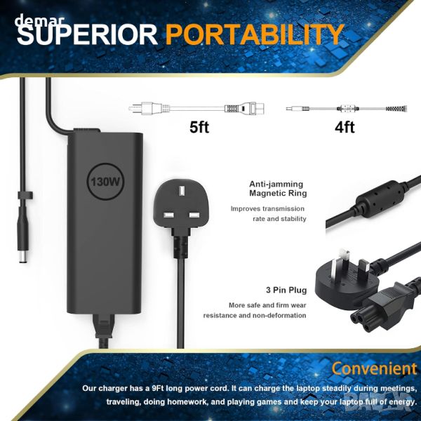 Вход: 100V-240V 50-60Hz, Изход: 19.5V 6.67A 130W, Размер на конектора: 4.5*3.0mm. 130W зарядно устройство, съвместимо с Dell XPS 15 9530, Dell XPS 15 9560, Dell XPS 15 9570, Dell Precision M2800, Dell Precision M3800, Dell Precision 5510, Dell Precision 5520, Dell Precision 5530, съвместим с Dell Inspiron 13 7347 13 7348 7459 Зарядно за лаптоп. Съвместим с SKU или DP/N: 06TTY6 0V363H 09TXK7 0RN7NW DA130PM130 HA130PM130 Пакетът включва: 1X AC кабел, 1X AC адаптер. Безопасност: CE-/FCC-/ROHS-сертифициран за безопасност