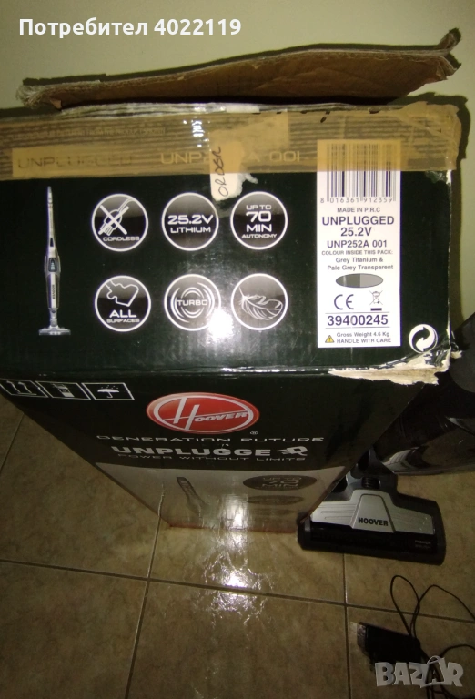 Прахосмукачката е чисто нова, неупотребявана, но беше без зарядно. Купихме оригиналното зарядно за умопомрачителната сума от почти 76 евро и се оказа, че батерията на прахосмукачката не се зарежда. Батерията е литиево-йонна, която е дават да издържа до 70 минути, 25.2 волта, но като не е зареждана и сега показва, че зарежда, но дори и след 12 часа включена няма ток и не тръгва. Не ни се занимава да сменяме и батерия. Ако някой е иска така ще е дадем на 100 евро. Сложили сме колко струва зарядното. Прахосмукачката е внос от Англия.