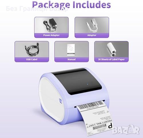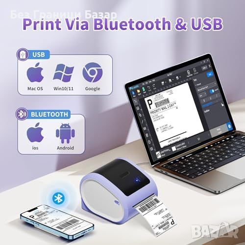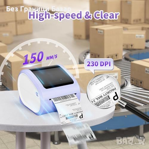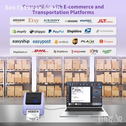 Съвместимост с множество платформи: Поддържа ширина на етикети от 1 до 4.6 инча и е съвместим с Royal Mail, Amazon, Etsy, Shopify, eBay и UPS.