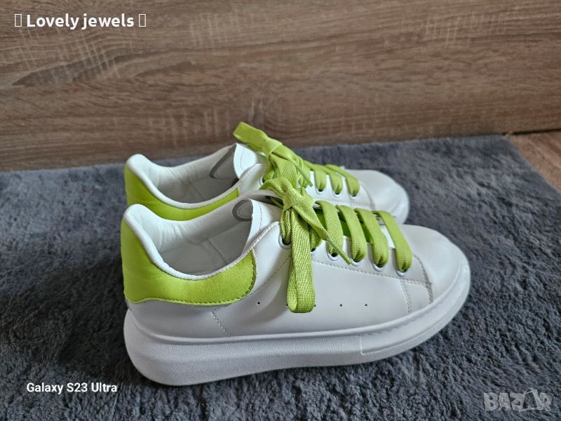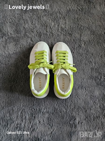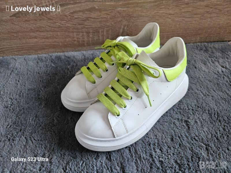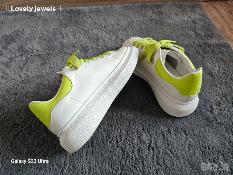 Бели спортни обувки с неон зелено → Обява 45808345