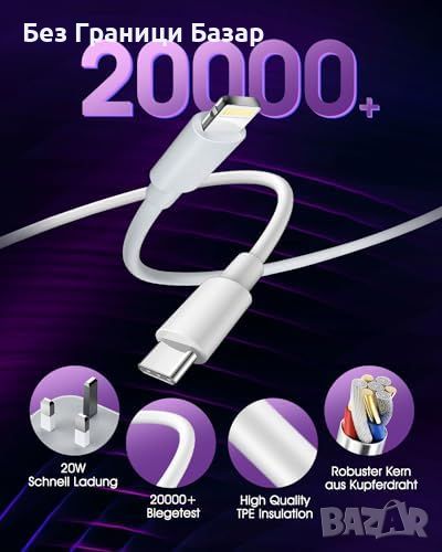 Ново Бързо Зарядно за iPhone, 2 броя, 20W USB C, 2М Кабел за зареждане Айфон