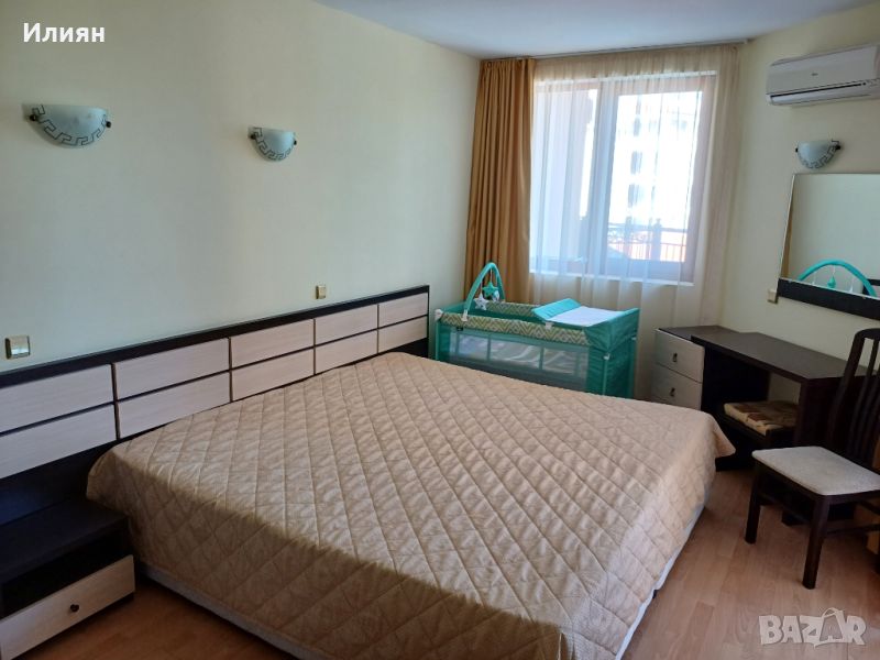 - спалня с 2 легла (100×200см), тоалетка, трикрилен гардероб, затъмняващи завеси (blackout)