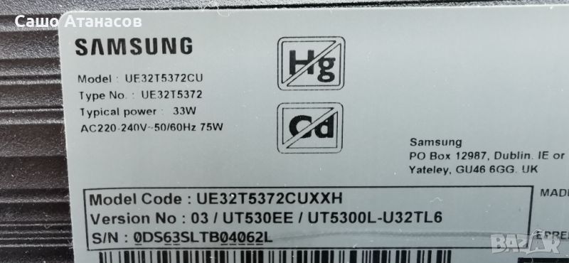 SAMSUNG UE32T5372CU със счупена матрица ,3IN1_KANT-S2_T4300 ,HV320FHB_N10_V01 ,WDN221M ,BN41-02515A