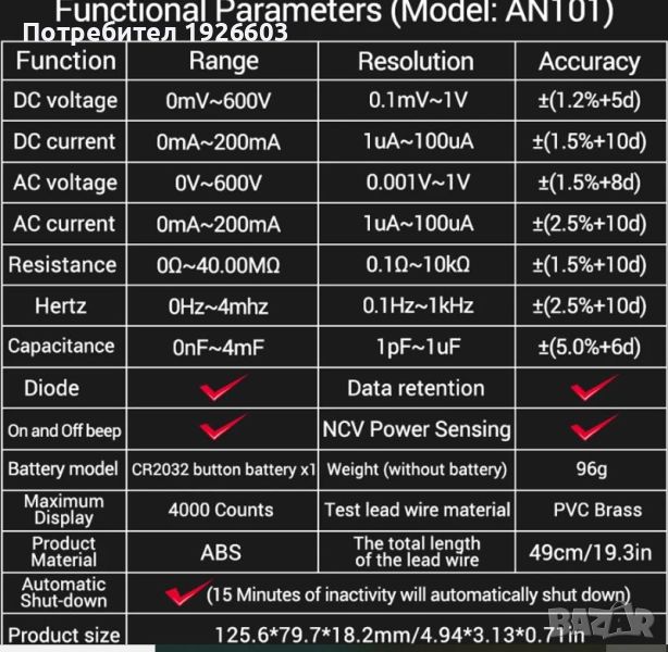 Прецизен и лесен за употреба мини мултиметър с голям екран и ефективна РТС защита по ток и напрежение.