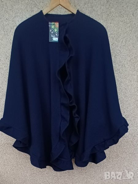 Дамска перелина /наметало с къдри. Красива и много стилна, плътна от еластична материя. Цвета е много тъмно синьо. Дължина на перелината 77 см. Отговаря на 3xl.