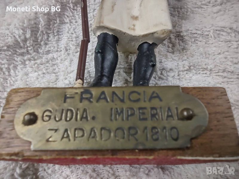 Предлагаме Колекционерска статуетка на Офицер поименно маркирана с месингова табелка с надпис „FRANCIA GJDIA. IMPERIAL ZAPADOR 1810”
