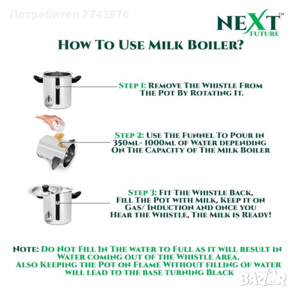 След засвирване на свирката млякото е сварено и може да се консумира. .