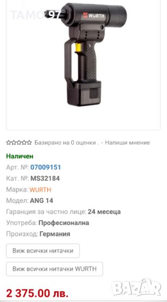 Магазинската цена на машината само с едната батерия е: 2 375лв.