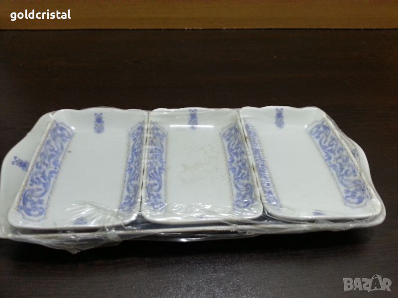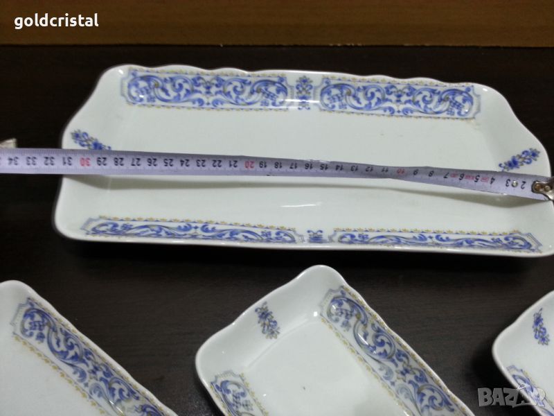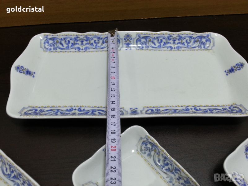Стар български порцелан плато голямо и три малки чинийки без маркировка без забележки 90лв втори нов не разпечатан 145лв сервиз комплект сет лот ретро арт декор винтидж колекция стари антикварни предмети обзавеждане за дома и семейството подходящи за подарък за ценители и колекционери