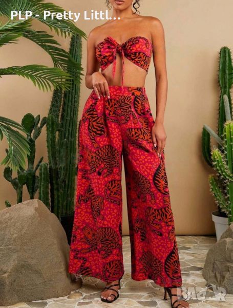 Модерен комплект от две части - топ и панталон с стилен десен, подходящ за ежедневието.