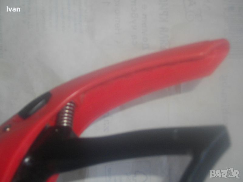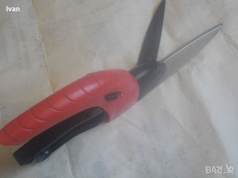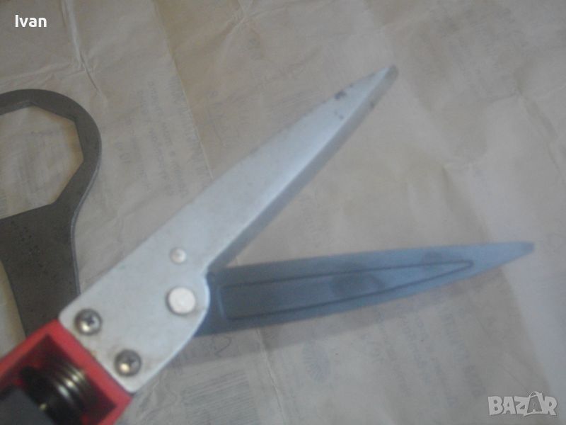 Градинска червена ножица - цена 59 лв. Съвсем нова, неизползвана. Немска оригинална. Острие - голямо дълго, едното е тефлон, другото - стомана. Дължина ножица - 370 мм. Функция заключване, пластмасова масивна голяма дръжка. Остриетата са по 130 мм дължина. Отваряне остриета - 90 мм, пружина на дръжката. Заключваща функция на остриетата. Височина на ножицата - 120 мм.
