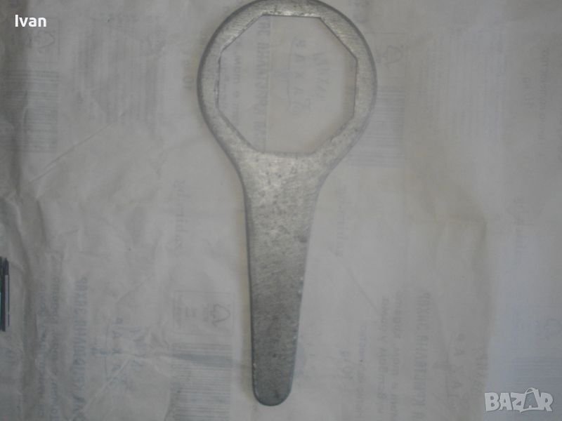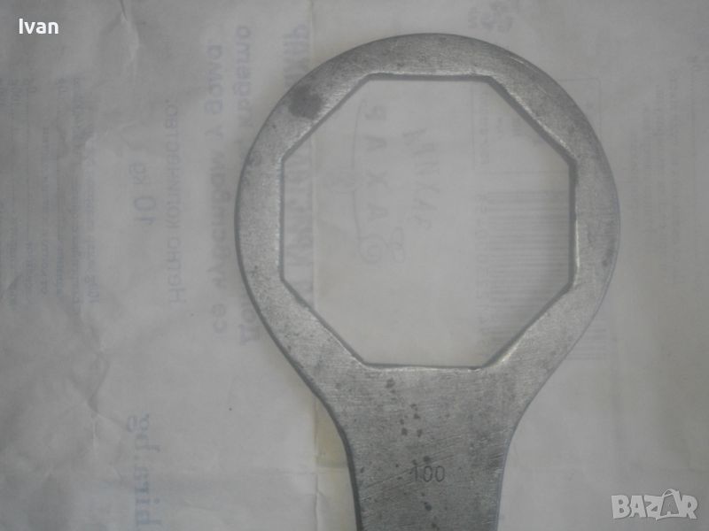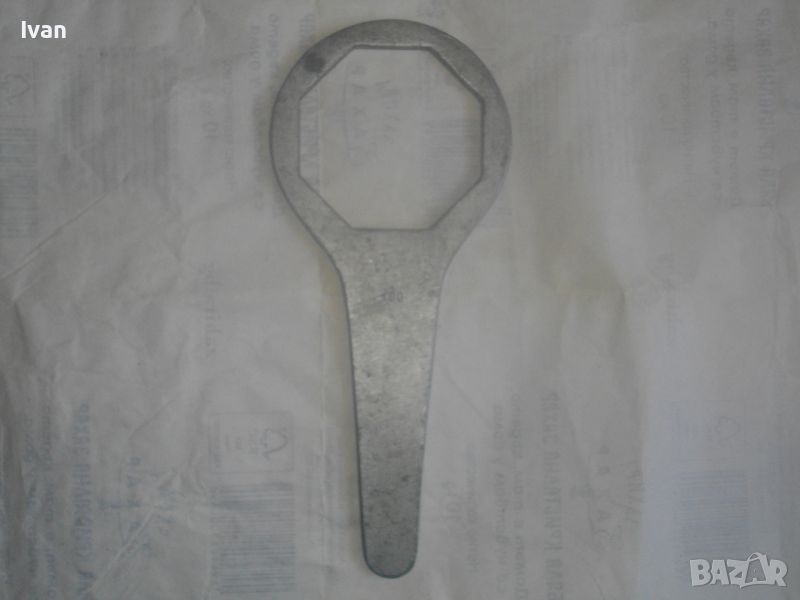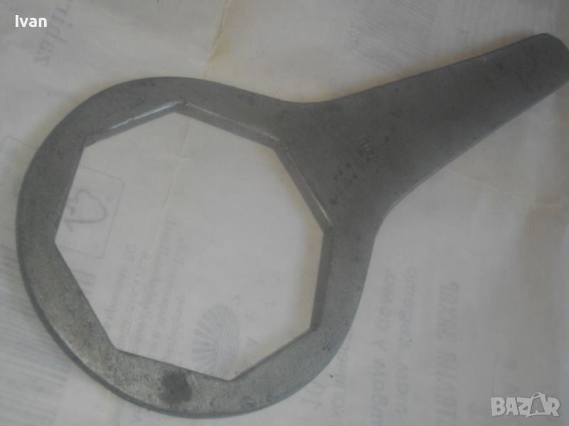 Ключ ръчен за смяна на маслен филтър размер 100 мм, осемстен - цена 59 лв. Старо качество, масивен инструмент, изцяло от плътен дебел алуминий. Размер захват - 100 мм, 8-стен. Предназначение - за маслен филтър на камиони и бусове/пикапи марки Isuzu , Mitsubishi и други, които са 8 точкови стени на филтъра. Дължина на ключа - 310 мм, ширина - 135 мм, дебелина на алуминия - 8 мм. Тегло на ключа - 1,0 кг. Почти нов, отлично състояние.