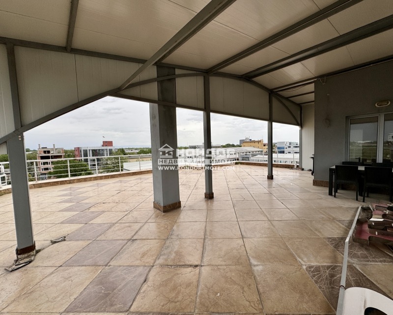 Покрива представлява открита 150 кв. метра тераса с уникална гледка към всички посоки. Изградена е пергула, има изведен ток, права и обратна вода. Вътрешното стълбище е с гранитогрес и алуминиеви парапети.