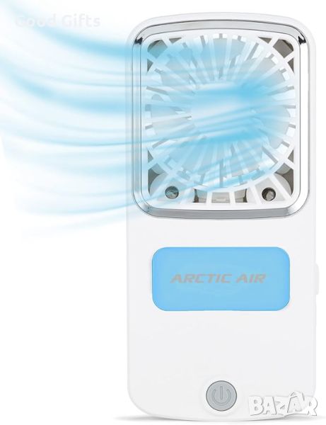 Преносим вентилатор Arctic Air, ръчен мини вентилатор Pocket Chill, безжичен личен охладител за въздух с технология Hydro-Chill, 3 скорости и вградена стойка, подходящ за пътуване, употреба на закрито или на открито.