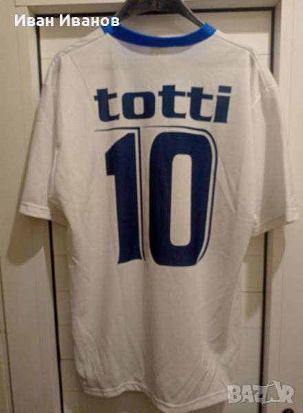 Уникална тениска на Францеско Тоти - Италия в перфектно състояние, не е носена, само е съхранявана. Тениската е закупена през 2007г. от Джузепе Меаца(стадиона на Милан) по време на европейската квалификация между Италия и Франция, завършила 0:0. Размер С.