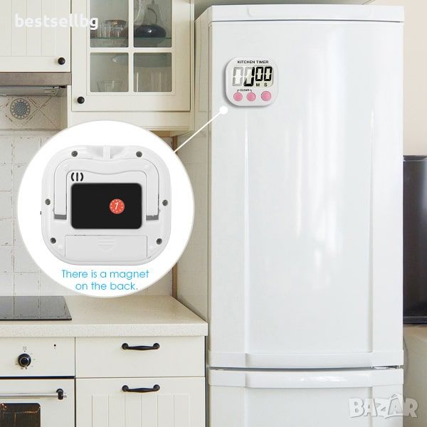 - Да го позиционирате по най-удобния за вас начин: С магнитна стойка, отвор за окачване и плоска основа, таймерът може да се постави навсякъде.