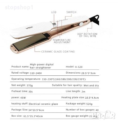 V-520 Преса за коса с плоско желязо с керамично покритие