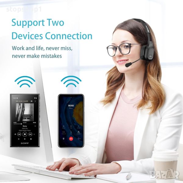 Връзка с две устройства : Технологията Bluetooth 5.0 осигурява бърза и стабилна връзка. Bluetooth слушалките могат да свързват две Bluetooth устройства едновременно. Ако имате две устройства, тази функция несъмнено е много полезна