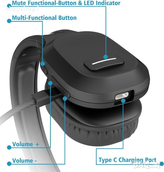 Дълъг живот на батерията : Безжичните Bluetooth слушалки могат да осигурят до 30 часа непрекъснат разговор или 400 часа в режим на готовност. (USB-C) Бързо зареждане, 1,5 часа бързо зареждане