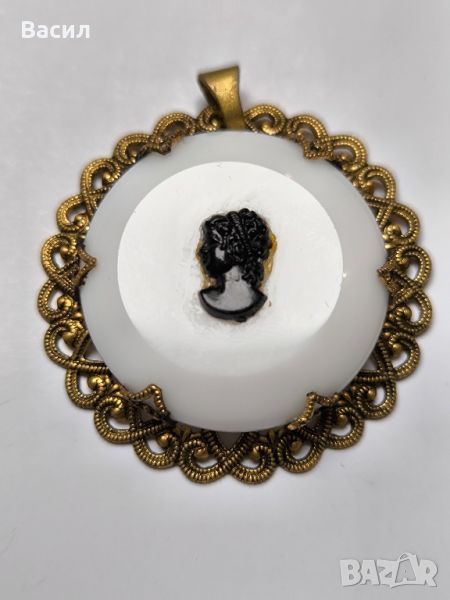 СТАРИННА ПОЗЛАТЕНА БРОНЗОВА КАМЕЯ ВИКТОРИАНСКИ СТИЛ ЮВЕЛИРНА РЪЧНА ИЗРАБОТКА РЕТРО БИЖУ Бял камък