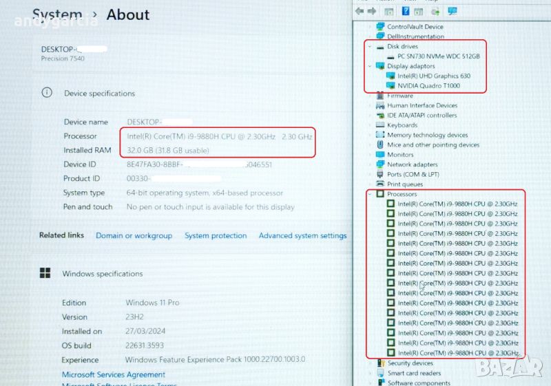 Процесор : Intel Core i9-9880H (2.30 GHz, up to 4.80 GHz, 16 MB Cache) 8 ядрен, 16 нишки.