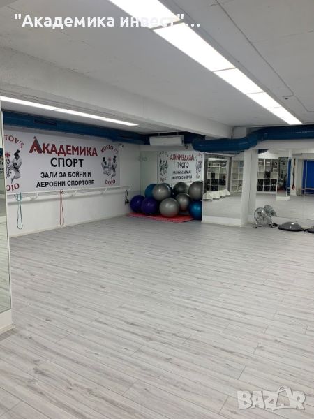 Отдава под наем зала за провеждане на различни школи и групови мероприятия: спортни тренировки ( аеробни и бойни- табата, степ, зумба, пилатес, йога, каланетика, хиѝт, пластика, репетиции, танци, жиу жицу, бокс, тай чи, джудо, тае бо, кик бокс, бокс, айкидо други спортни занимания )Възможно е залата да се наеме почасово или изцяло на база месечен наем, както и да се ползва с друга цел ( офис, събития, презентации, курсове, студио / салон за красота, зала за игри - тенис на маса, билярд, датрс и др.) Помещението е голямо с огледала с площ от общо 213 кв.м. + 59 кв.м зала за силови тренировки. Има подвижни преградни стени с огледала, които позволяват обособяване на по-малки отделни пространства в самата зала. Залата разполага с рекуператор за вентилация, 2 климатика, видеонаблюдение, СОТ, тв и интернет.Към помещенията има дамска и мъжка съблекалня със санитарен възел и душ към всяка от тях. САМОСТОЯТЕЛЕН ВХОД с лесен и контролиран достъп. Всичко е ново, чисто и поддържано. В съседство на сградата има голям обществен паркинг. Цените са по договаряне - взависимост от времето и броя използвани часове.Комплекс Академика разполага с 200 броя обитаеми /населени апартаменти, работещи офиси, лаборатория, медицинска и дентална клиника, кафене-бар, бойна зала за карате с фитнес част Академика спорт Kostov’s Dojo!