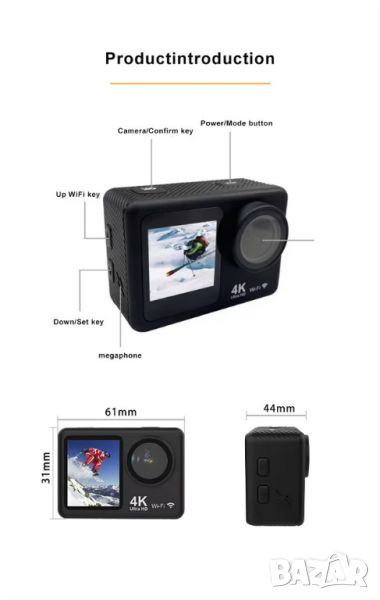 Екшън камера D2 / с 2 обектива / 4К / WiFi