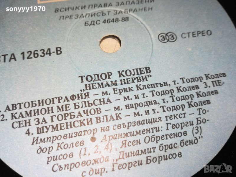 КУПУВАМ-ТОДОР КОЛЕВ-НЕМАМ НЕРВИ 2005242022 → Обява 45828492