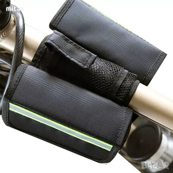 Голям обем, предлага достатъчно пространство за резервна вътрешна гума, инструменти и лични вещи. Изключително лека заради полиестерната си конструкция. С ленти велкро за бързо освобождаване и джоб за малък телефон. Светлоотразителните ленти от двете страни подобряват сигурността през тъмните часове на денонощието.