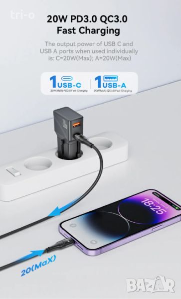 • Бързо зарядно устройство PD20W тип C: Адаптерът се доставя с мощно бързо зарядно устройство PD 20W тип C, което гарантира, че вашите устройства се зареждат бързо и ефективно.