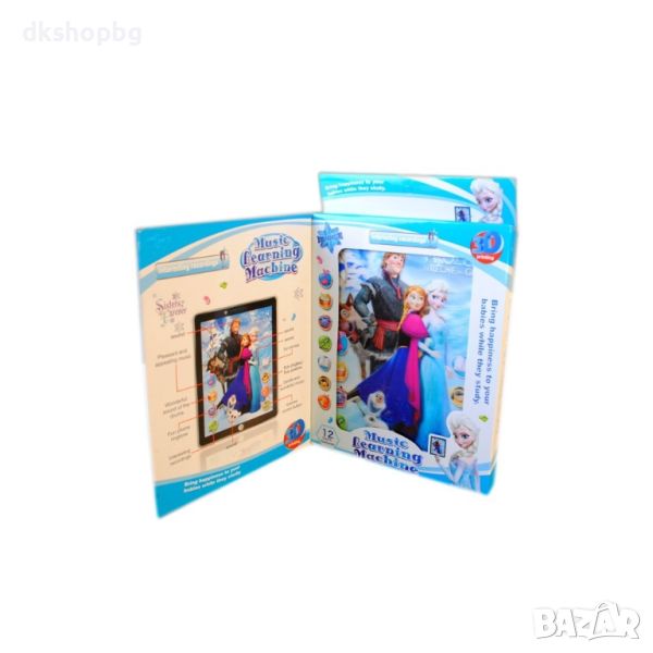 С красиви изображения на Елза, Анна, Еленчето Свен, Добрия Олаф и Принц Ханс от Чудните Острови. При докосване всеки герой запява своята песничка или реплика от филмчето Frozen.