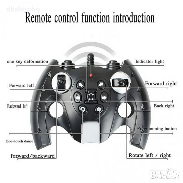 Максимална дистанция за безжично управление с дистанционното е около 80-100м. В комплекта е включен безжичен сензорен часовник дистанционно, който позволява само чрез движение на ръката да насочвате автомобила в желаната посока, да го завъртате или повдигате. Също така към комплекта има и стандартно дистанционно управление с бутони и джоестик.