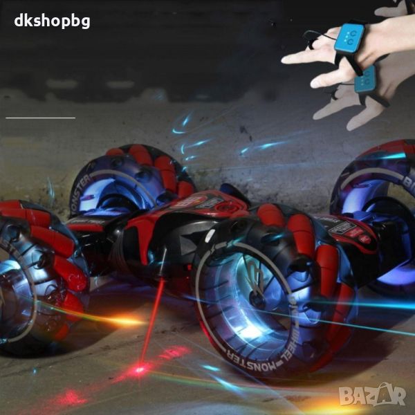 Кола трансформър с дистанционно управление и гривна за жестово управление с движения на ръката с четири посоки на движение, rc количка която се променя на офроуд бъги или на спортна кола с едно движение на ръката и развива до 25 КМ/ч
