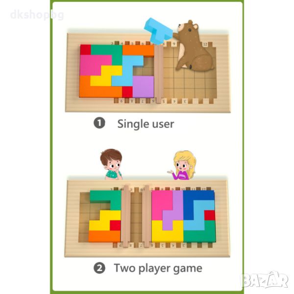 Играта е изработена от дърво, боядисано с екологични лакове.