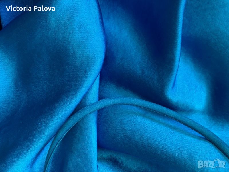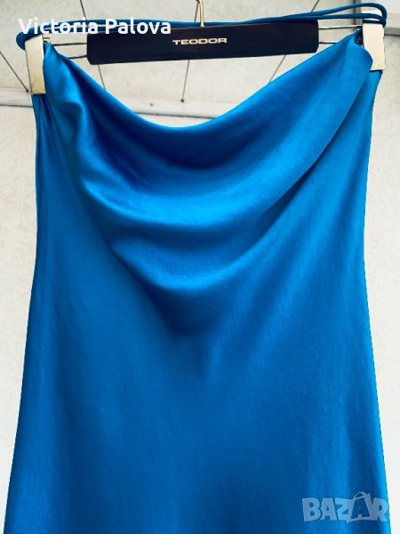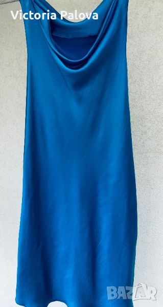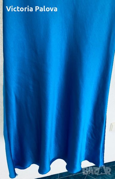 Роклята е на верев, затова се разтяга , изключително красив цвят, пада тежко, 60% вискоза, презрамките са кръгъл ластик. Приблизителни размери: дължина без презрамки -110см, ГО - 52см, талия - 45см, ханш - 52-54см.