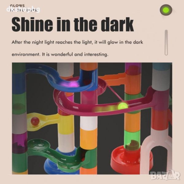 60 броя топчета - 30бр стъклени, 15бр светещи и 15бр пластмасови