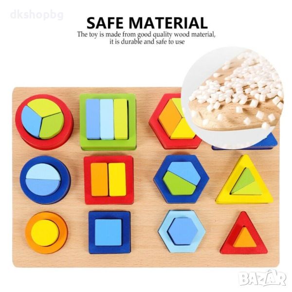 Montessori играчка - пъзел с фигури, е вълнуващ начин за обогатяване на детското развитие. Предназначен за деца, този пъзел не само предоставя забавление, но и стимулира визуалната и когнитивната активност. Съставен от цветни дървени фигури в различни форми, пъзелът насърчава децата да разпознават и съчетават частите, за да създадат цялостни изображения. Този процес не само подпомага фината моторика и координацията на движенията, но и усъвършенства способността на децата за логическо мислене и решаване на проблеми. Изработен от висококачествено дърво с безопасни бои, пъзелът е идеален за забавление в дома или образователна среда. С весели цветове и различни форми, тази играчка предоставя удоволствие от играта, като едновременно развива важни умения у децата. Подарете на вашето дете цветен Montessori пъзел - ключ към радостта от учене и креативно израстване.