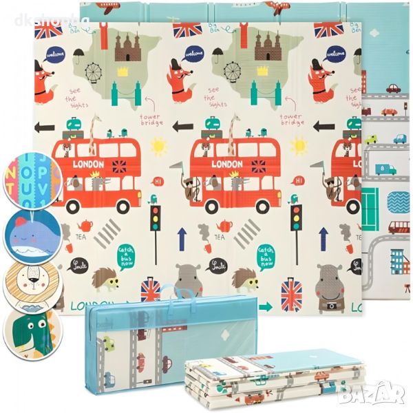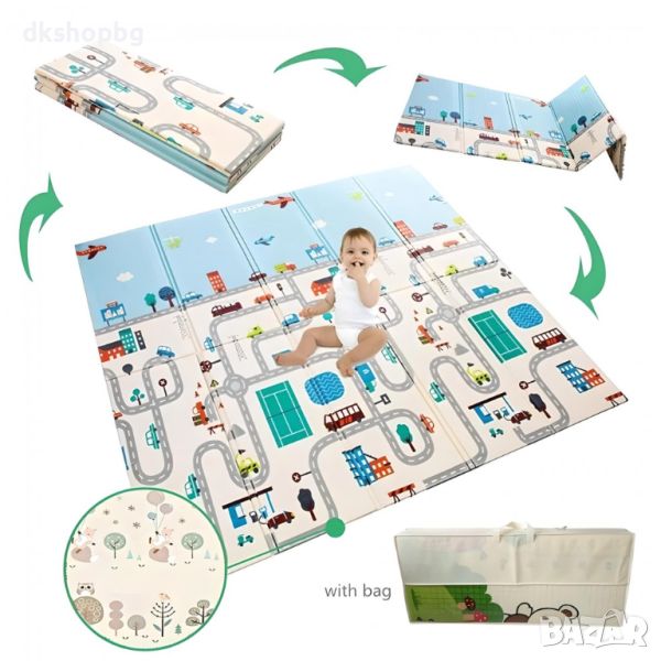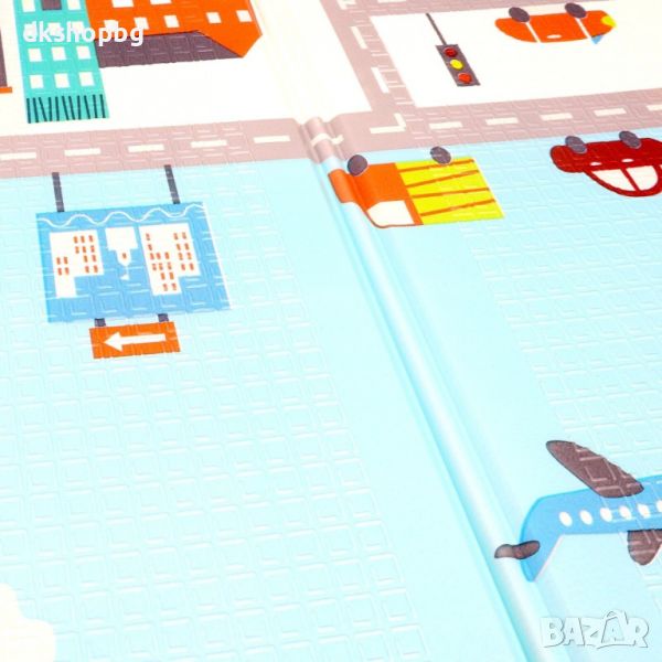 Двустранно, сгъваемо килимче за пълзене и игра от XPE пяна. Материалът, от който е изработено килимчето е нетоксичен и напълно безопасен, което го прави подходящ за употреба от деца, дори и в най-ранна възраст.