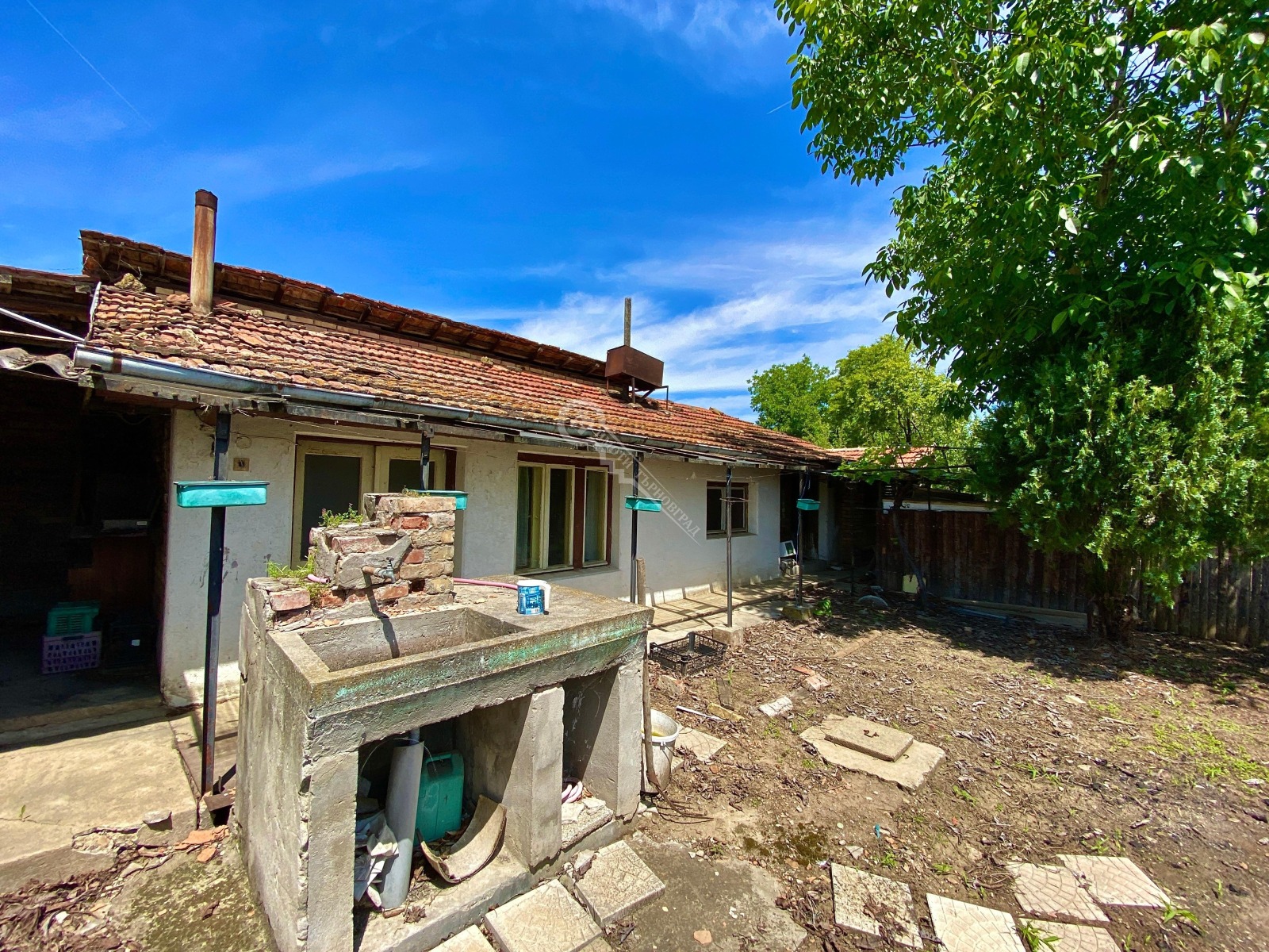 Имотът разполага и с постройка, която е обособена за механа със санитарен възел. Дворът е равен с площ от 1500 кв. м., като разполага с чешма и кладенец. Оферта : 14790