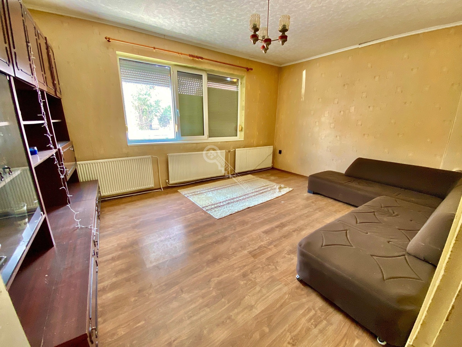 Имоти Търновград Ви предлага едноетажна, монолитна къща в гр. Полски Тръмбеш. Къщата е разположена на асфалтов път с целогодишен достъп. Имотът е с РЗП от 140 кв. м., като разпределението на стаите е както следва: входно антре, коридор, три спални, кухня, хол, баня с тоалетна и голямо избено помещение. Отоплението на къщата е разрешено посредством локално парно на твърдо гориво. Всички прозорци са подменени с PVC дограма и външни ролетни щори.