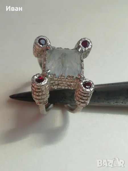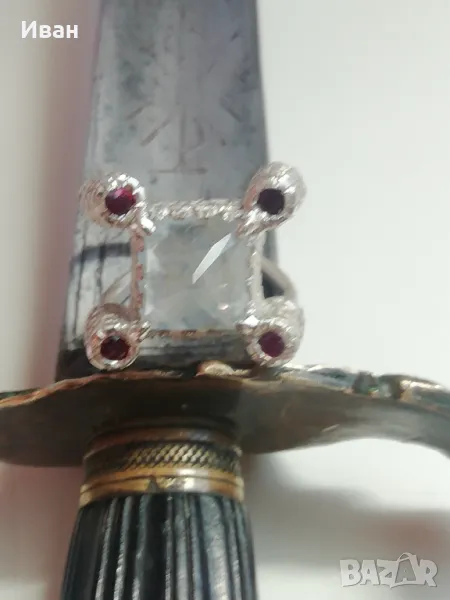 Сребърен пръстен със Сапфир и Рубини → Обява 45836746