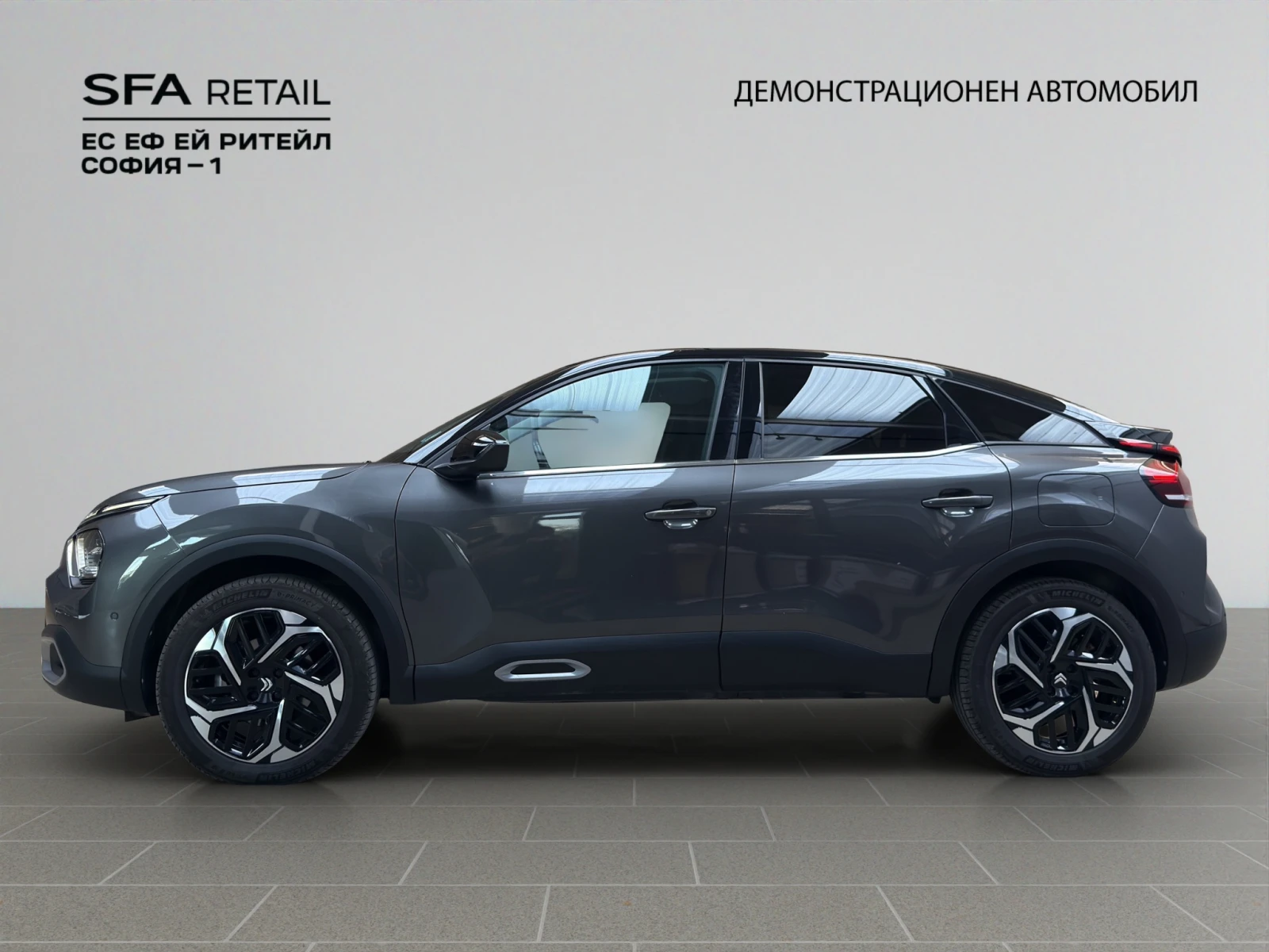 АУДИОКОМУНИКАЦИЯ * 2 броя USB (тип А (зареждане) отпред и отзад) * 5'' TFT приборно табло с подсветка * 6 тонколони * Citroen Connect Assist (e-Call, Assistance) * Hands Free Bluetooth * Head-Up дисплей * My CITROEN Drive Plus (Навигация на 10'' HD сензорен екран с разпознаване на естествен говор, Mirror Screen (Android Auto и Apple CarPlay ), радио MP3 с цифров радиотунер, уравление от волана) * Контакт 12V + USB (тип С (зареждане + данни) отпред) ЕКСТЕРИОР * A-колона в в цвета на купето + B-колона в черен лак * Арки на калниците в черен цвят * Дръжки на вратите в цвета на купето * Пакет Color Glossy Grey * Предна и задна брони в цвета на купето, задна с престилка в черен лак * Хромирани лайстни на страничните стъкла * Черупки на огледалата в цвят Noir Perla Nera ИНТЕРИОР * Бордно табло в цвят Citroen Grain, аератори в хром сатен * Висока централна конзола с подлакътник и жабка * Волан тапициран с фина кожа и с хромирани елементи * Делима задна облегалка (60: 40) * Джобове на гърба на предните седалки * Подвижен под в багажника * Регулируем по височина и дълбочина волан * Регулируеми по височина задни подглавници * Центрлен заден подлакътник, отвор за ски * Чекмедже на бордното табло КОЛЕЛА * 18'' лети джанти AEROBLADE с диамантен ефект КОМФОРТ И ФУНКЦИОНАЛНОСТ * Автоматичен двузонов климатик поленов с филтър с активен въглен * Бордови компютър * Достъп и стартиране '' Свободни ръце'' * Задни електрически стъкла с постепенно задвижване * Окачване Progressive Hydraulic Cushions * Предни електрически стъкла с постепенно задвижване * Регулируеми по височина предни седалки + лумбално регулиране за водача * Централно заключване с дистанционно управление ОБОРУДВАНЕ * Авариен комплект при спукана гума ПОМОЩ ЗА ВОДАЧА * Hill Start Assist * Електроусилвател на волана с променливо усилие * Наблюдение на мъртвия ъгъл на огледалата * Пакет City Camera Plus (Камера заден ход Top Rear Vision + предни и задни паркинг сензори + Flank Guard) * Пакет Drive Assist (Адаптивен регулатор на скоростта STOP&GO, Active Safety Brake 2. 0 (с видеокамера и радар) + предупреждение за опасност от сблъсък, Активна система за следене на пътната лента, Предупреждение за понижено внимание на водача, Разпознаване на пътните знаците за ограничение на скоростта и препоръка, Разширено разпознаване на пътните знаци) СВЕТЛИНИ И ВИДИМОСТ * LED дневни светлини * LED Фарове * LED фарове за мъгла с функция за завой * Автоматични къси/дълги светлини (включва автоматично включване на фарове) * Автоматични чистачки * Електрически сгъваеми огледала с осветление * Електрохромно вътрешно огледало * Затъмнени задни стъкла * Осветление в багажника * Пакет Вътрешно осветление (преден плафон с 3 лампи, заден плафон с 3 лампи, огледала в сенниците) СИГУРНОСТ И БЕЗОПАСНОСТ * 2 броя ISOFIX на задната седалка * ABS, ESP, ASR (включва REF - електронно разпределение на спирачното усилие, AFU- завариен спирачен асистент) * Автоматична електрическа паркинг спирачка * Автоматично заключване при потегляне * Въздушни възглавници тип завеси за предни и задни места * Индикация за понижено налягане в гумите * Механично детско заключване * Пиротехнически колани с ограничител на усилието * Предни странични въздушни възглавници * Фронтални въздушни възглавници за водача и пътника ДОПЪЛНИТЕЛНА ИНФОРМАЦИЯ Фабрична гаранция до 28. 03. 2029 г. или 100 000 км. Референтен номер 2312477 Работно време от 09: 00 до 19: 00 Събота от 09: 30 до 16: 30