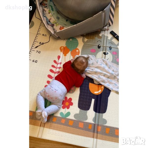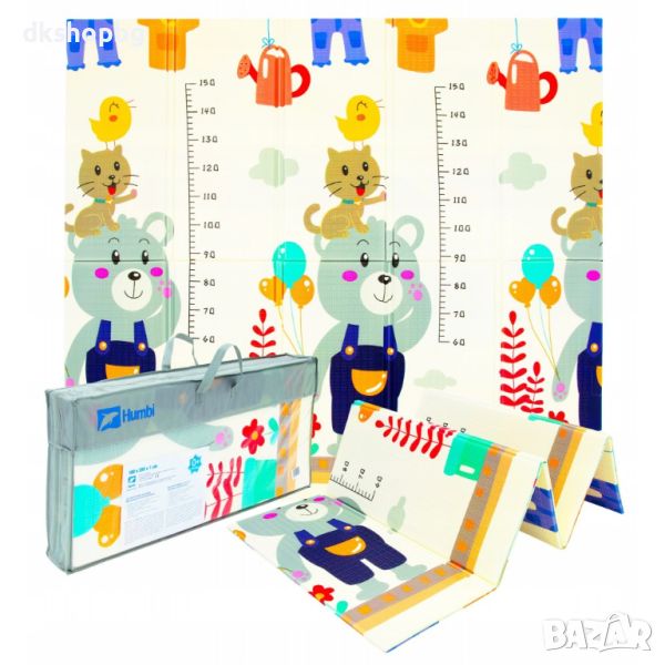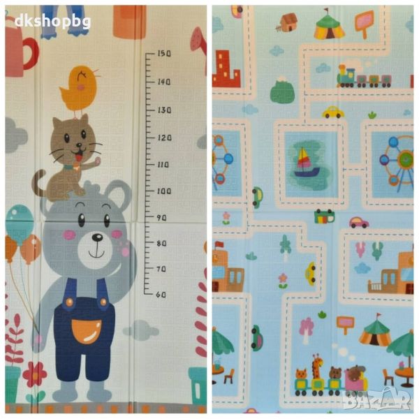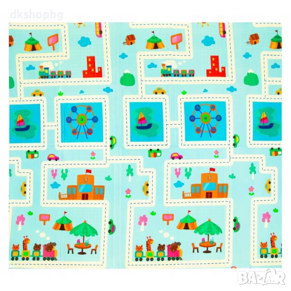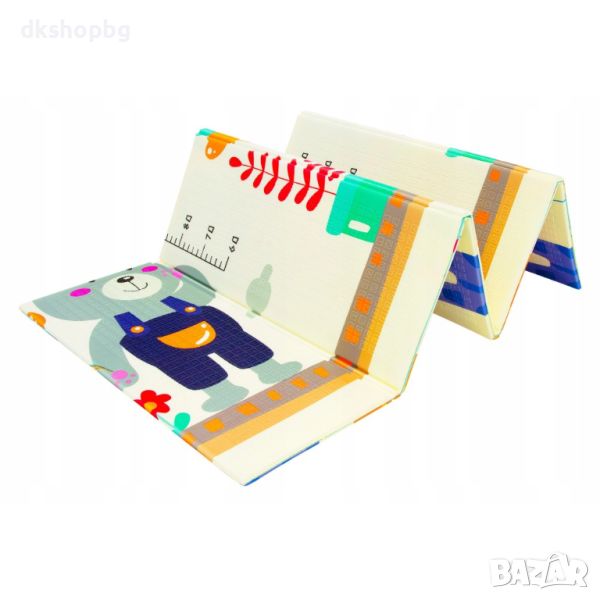 Двустранно, сгъваемо килимче за пълзене и игра от XPE пяна. Материалът, от който е изработено килимчето е нетоксичен и напълно безопасен, което го прави подходящ за употреба от деца, дори и в най-ранна възраст.