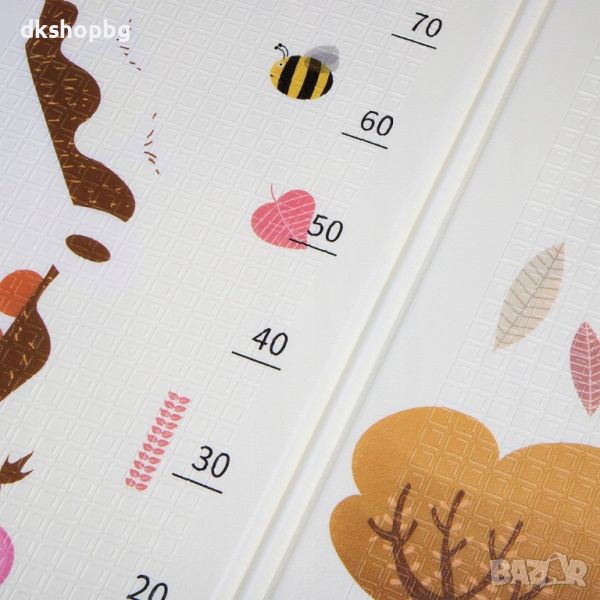 Килимчето изолира перфектно от студеният под. Меко е и комфортно, но в същото време достатъчно плътно и устойчиво на натиск. Чудесно буферира и обира удара при евентуално падане на детето. Осигурява защита на костното развитие на бебетата, като предпазва коленете при пълзене.