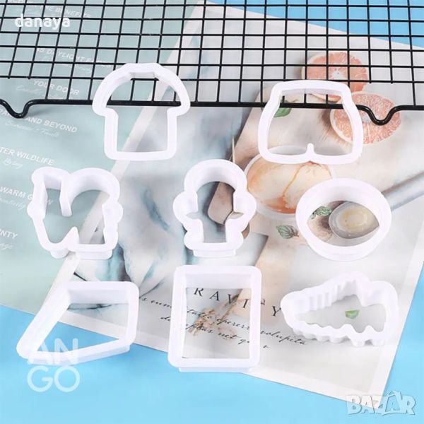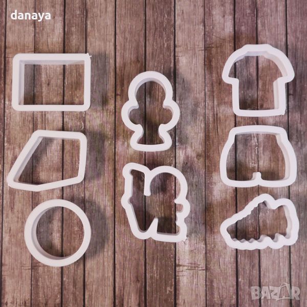 Комплект от 8 броя форми за сладки на футболна тематика. Чудесни са за изрязване на маслено тесто, бутер тесто и тесто за курабии. 8 различни формички, с които ще може да направите бисквитки с форма на футболна топка, футболно игрище, купа, бутонка, тениска, гащи. Зарадвайте децата с бисквитки с нестандартна форма.