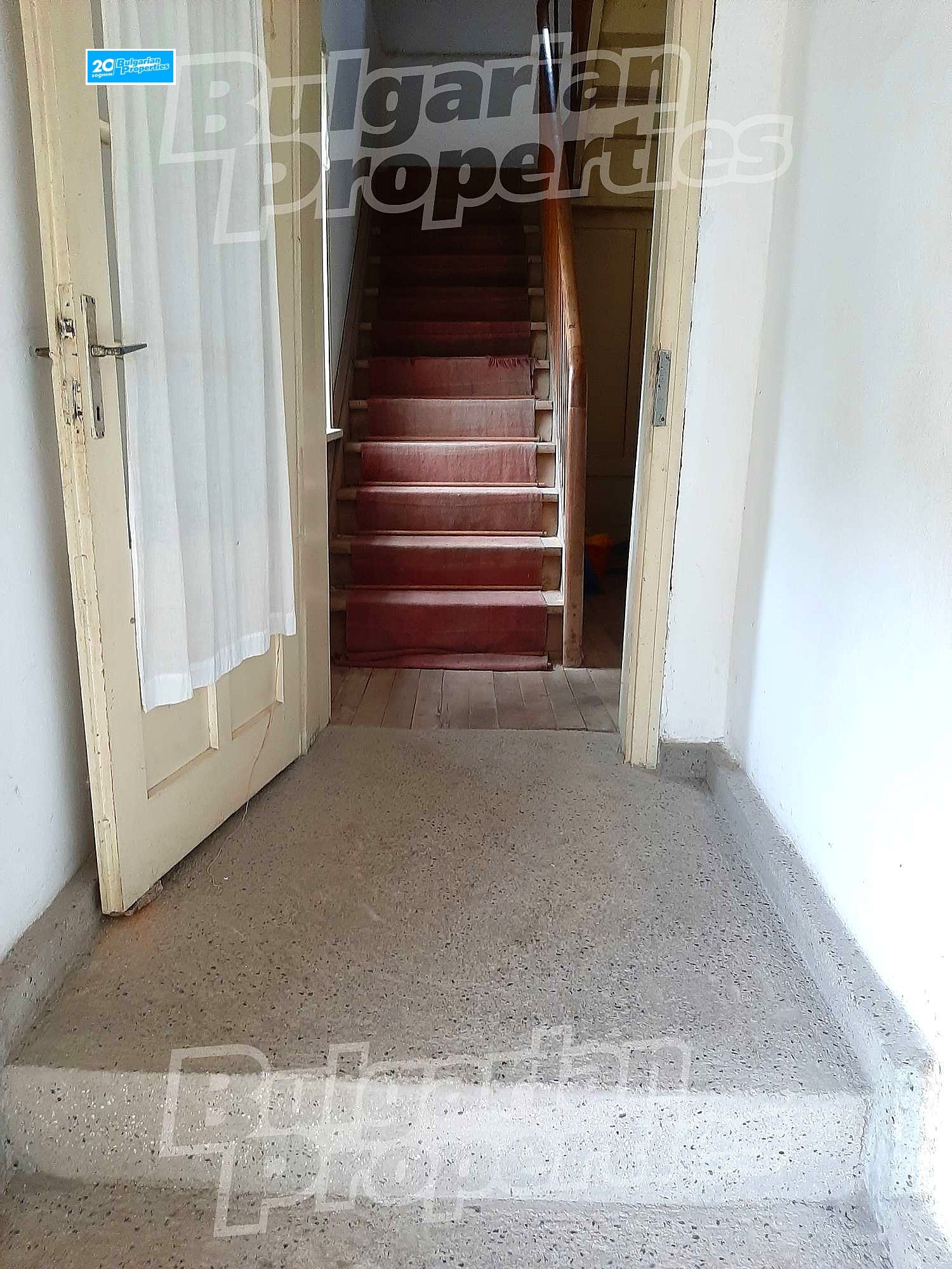 Първи етаж - коридор, четири стаи, две от които са комбинирани в голямо помещение с достъп до улицата, тъй като в миналото е била сладкарница. Вътрешно стълбище.