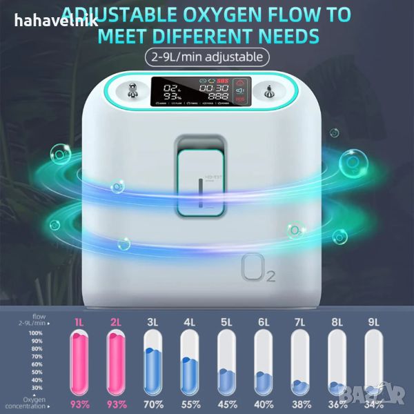 Предимството му е високата концентрация на кислород и стабилното му извеждане.
